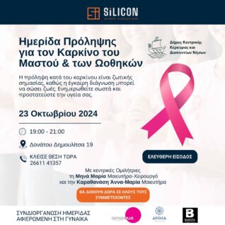 Η πρόληψη είναι η καλύτερη θεραπεία. Με αυτή την κεντρική ιδέα, το Oxygen Plus, σε συνεργασία με τη Silicon, σας προσκαλούν σε μία σημαντική ημερίδα ευαισθητοποίησης και ενημέρωσης για τον καρκίνο του μαστού και των ωοθηκών, που θα πραγματοποιηθεί υπό την αιγίδα του Δήμου Κέρκυρας. Στόχος της εκδήλωσης είναι να ενισχύσει τη σημασία της πρόληψης και της έγκαιρης διάγνωσης, παρέχοντας πολύτιμες πληροφορίες και συμβουλές από έμπειρους ιατρούς.